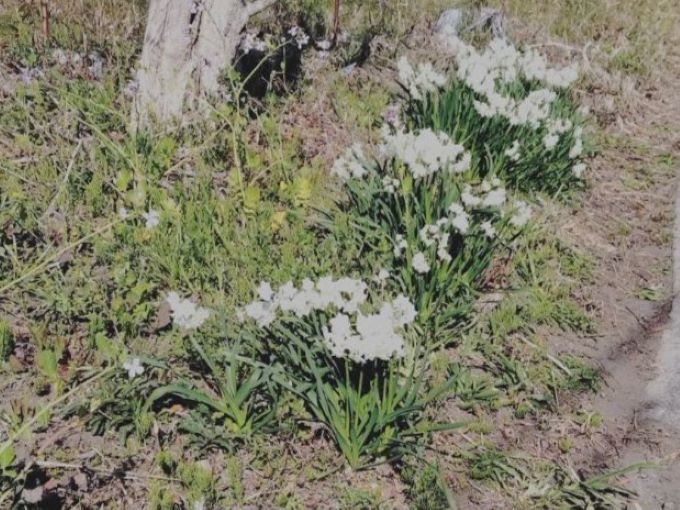 | 03.道端の水仙、もう春です | 04.花嫁街道の入口を示す看板 |