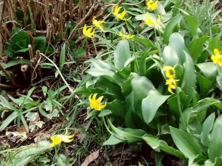 12.金仙寺の庭に咲く黄色のカタクリ |