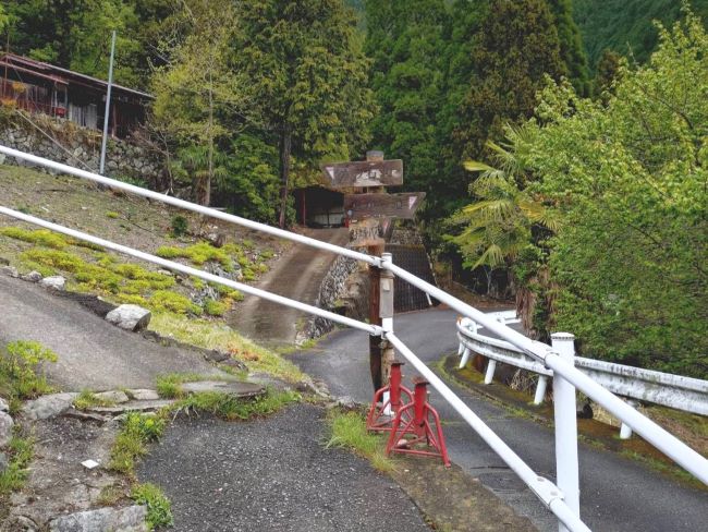 02.「むかし道」からはずれ、 民家わきから六ツ石山への登山道が始まる |