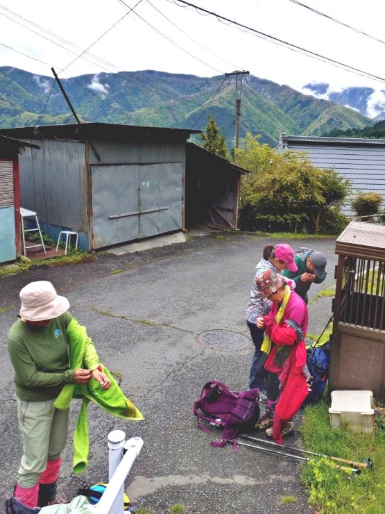 | 01.水根バス停にて 数日前の雨予想が曇天となった |