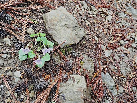 | 05.登山道につつましく咲くタチツボスミレ | 06.急な登りだ 少しガスがたちこめ、あたりの空気はしっとり |