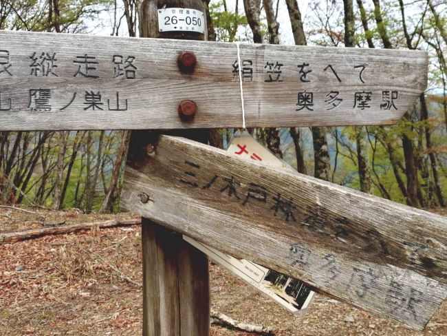 12:35三ツ木戸山分岐→ 15:00奥多摩駅15:21⇒(往路を戻る)⇒16:56新所沢駅